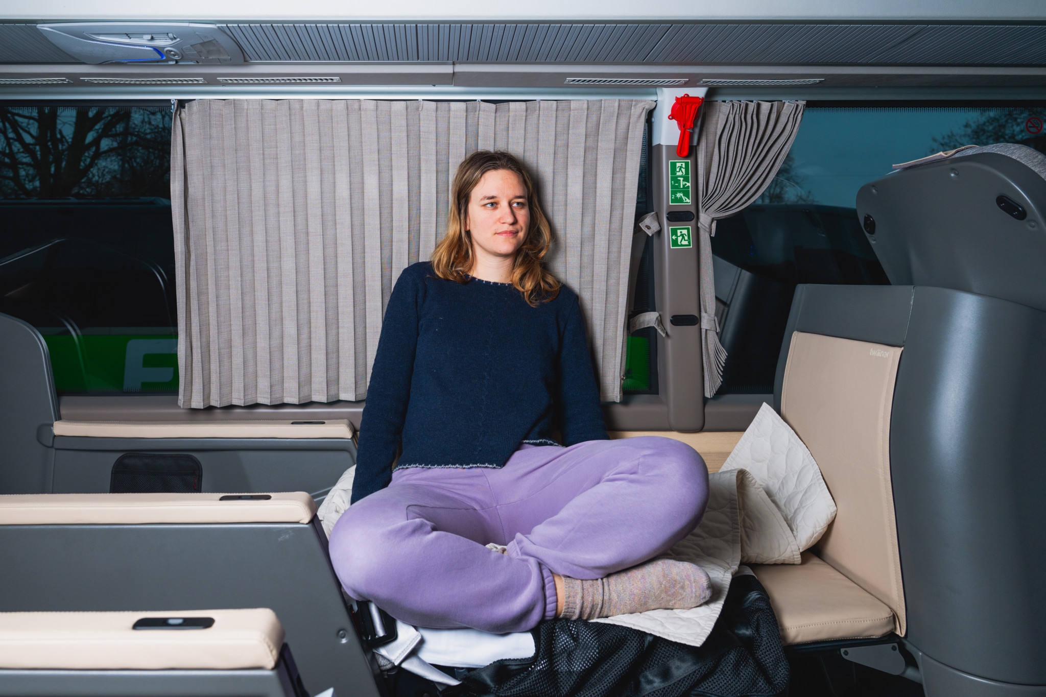 Twiliner im Test: Mit Gurt und Sicherheitsschlafsack: So schläft es sich im Luxus-Nachtbus